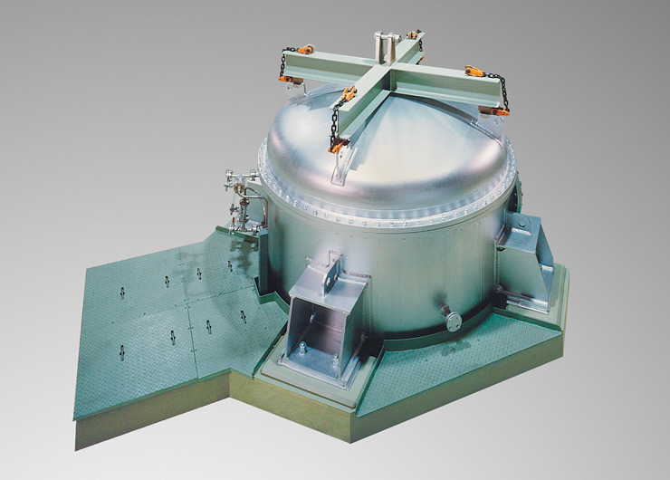 Combustible materials, which make up 70-80% of the waste, are burned in incinerators, as is oil. Noncombustibles are melted in high-frequency melting furnaces or compressed under high pressure to reduce their volume. Off-gases generated from the incinerator and melting furnace are thoroughly filtered through a built-in ceramic filter to remove dust, which is then treated. Washing wastewater, which is liquid waste, is also filtered through a ceramic filter to remove radioactive materials.