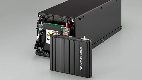 Nickel-zinc rechargeable battery is storage battery that use zinc for the negative electrode and NGK’s proprietary ceramics for the separator between the positive and negative electrodes. This battery is characterized by high energy density, high safety, long service life, and maintenance-free features including remote monitoring and preventative maintenance, making it ideal for indoor installation and as a backup power source for key equipment.
