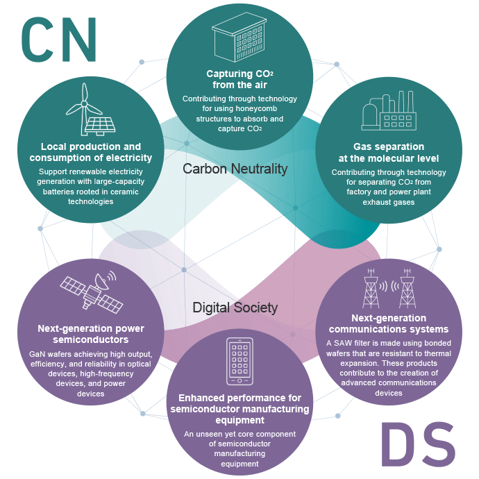 A company to contribute to carbon neutrality and digital society with our unique ceramic technologies