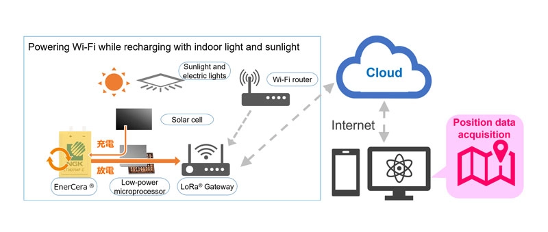 Based on the knowledge and expertise to be gained from this demonstration project, NGK will explore solution businesses that utilize position data, including not only logistics, but also monitoring for the behavior and work environment of office personnel, and analysis for the flow of people at stores, factories, and other specific locations. Leveraging the features of EnerCera, which include being ultra-compact and thin, having a high capacity and high output, being highly heat resistant, and having a long life, NGK will continue to collaborate with a variety of partners and develop applications for a wide range of fields, thereby helping to realize an IoT society.