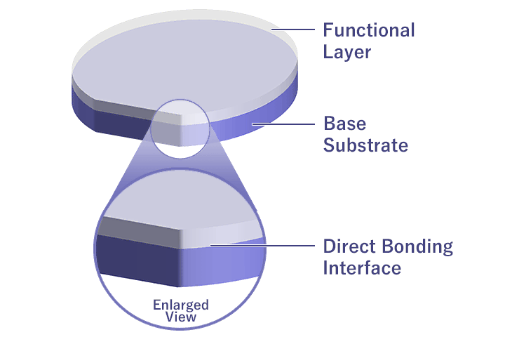 TFLN bonded wafers for optical communications are high-performance wafers made by precision-polishing a bonded wafer consisting of lithium niobate (LN) bonded to a base substrate. This product offers thin-film LNs free of crystal damage, which contributes to the development of optical modulation devices featuring lower power consumption and smaller dimensions—ideal for data centers and core/metro networks.