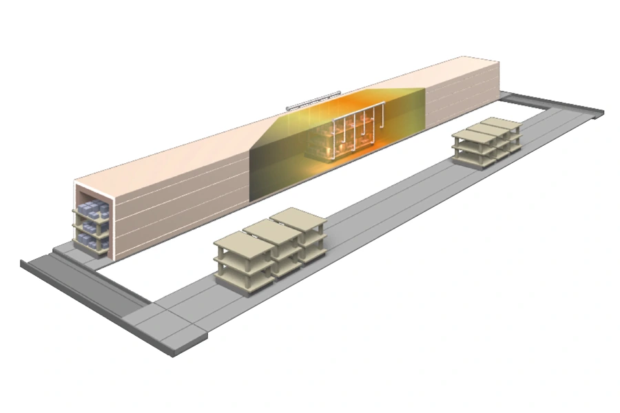 Firing furnaces allow control of oxidizing and reducing atmospheres using N2 and O2 and precision temperature control of individual preheating, baking, and cooling zones to meet the needs of specific heating processes (calcination, glost firing, annealing).