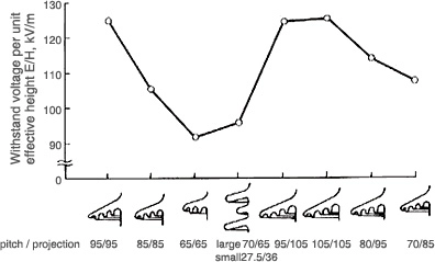 Based upon accumulated laboratory test data and field experiences regarding efficiency of leakage distance of various shed shapes for AC & DC systems, NGK has established the following standard shed shapes.