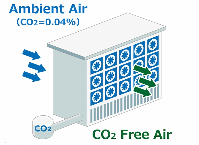 Since the concentration of atmospheric CO2 is approximately 0.04%—extremely low—large volumes of air must be treated efficiently to adsorb or absorb significant amounts of carbon.