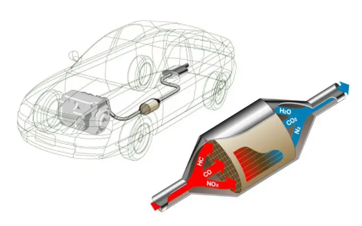 HONEYCERAM, one of the ceramic substrates for automotive catalytic converters, is used as the substrate to hold the catalyst in place in the purification unit. The catalytic device with built-in HONEYCERAM is installed midway in the exhaust pipe connecting the engine to the silencer (muffler) to remove harmful pollutants (HC, CO, NOx) contained in the exhaust gas. HONEYCERAM enables efficient exhaust gas purification based on the large reaction area per volume, low pressure loss, and low heat capacity of the substrate. Since the start of production in the 1970s, 2 billion HONEYCERAM units have been manufactured (as of 2025), which continue to purify the exhaust gas of automobiles all over the world.