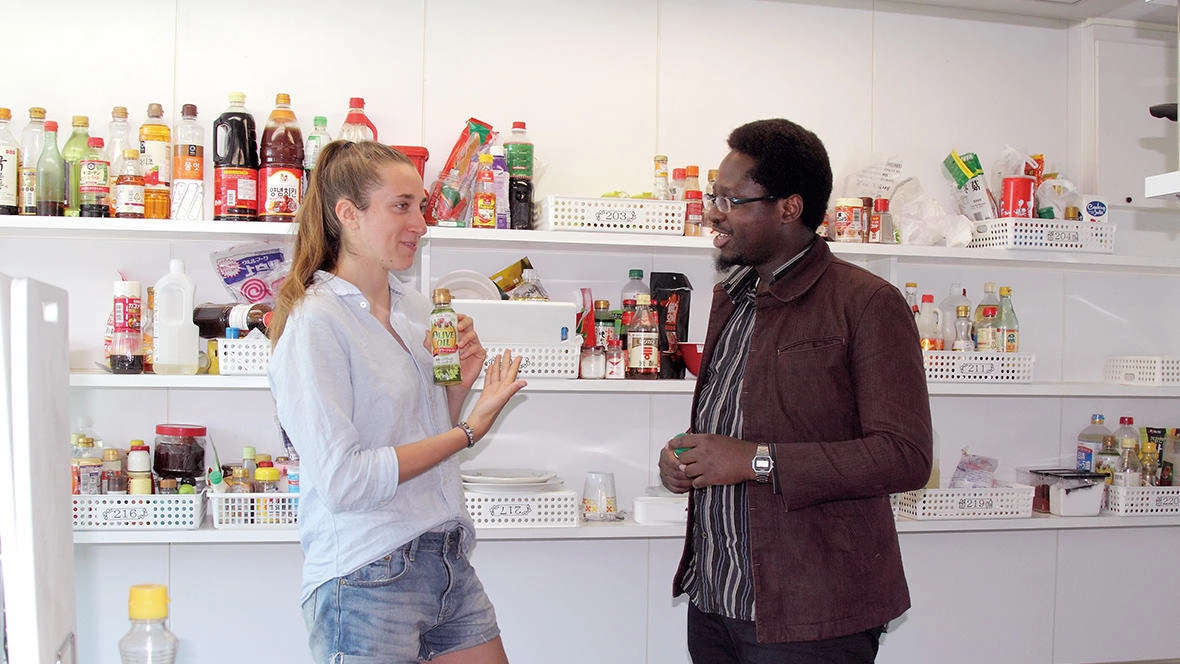 Alexia Fabiani is from Italy (left), and she is studying physics at Nagoya University's School of Science. "It's safe and quiet here, and all the residents are nice people. When you live on your own it's hard to make friends, but that's not the case here. I can meet friends easily." On days off the international students gather in the common kitchen area and cook. "I make a lot of Italian food like pizza and pasta. But I'm a vegetarian, so I don't use any eggs or meat." The students often share what they cook with one another.