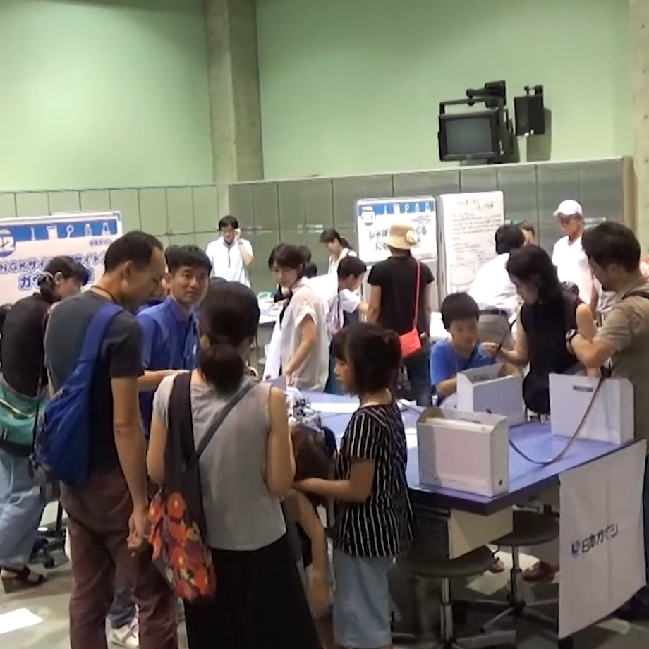 We exhibit at science events in various regions. Our employee volunteers demonstrate the experiments.